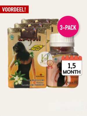 | Inhoud 3-pack: | 3 doosjes met flacon à 30 capsules. Totaal 90 capsules (1,5 maand) |